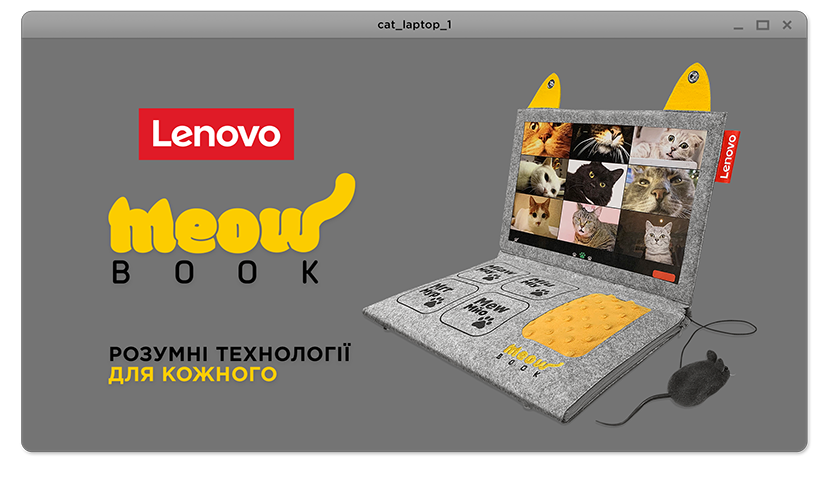 Насправді, коти не лише загроза вашій продуктивності. Часточки їх хутра потрапляють на мікросхеми, а клавіші з часом починають «западати» під масою тваринки. Аби робота вдома стала комфортнішою та безпечнішою для вашого портативного комп’ютера, представництво Lenovo в Україні разом із креативною агенцією Leo Burnett Ukraine розробили ноутбуки для котів — лаптопи MeowBook.