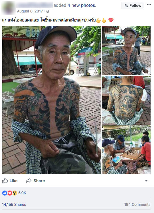 У серпні 2017 звичайний таєць побачив у парку кількох людей. Один із них був майже повністю вкритий татуюваннями. Перехожий сфотографував його і виклав знімки в Фейсбук в ремаркою: «Дядя, ти мій ідол. Коли я виросту, буду я виглядати так само, як ти?»