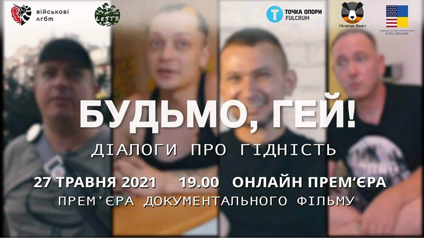 Прем’єра документальної стрічки «Будьмо, гей! Діалоги про гідність» відбудеться онлайн 27 травня 2021 року о 19:00. Розкаже документалка про те, як революція Гідності та війна на Донбасі вплинула на ЛГБТ+ спільноту в Україні.