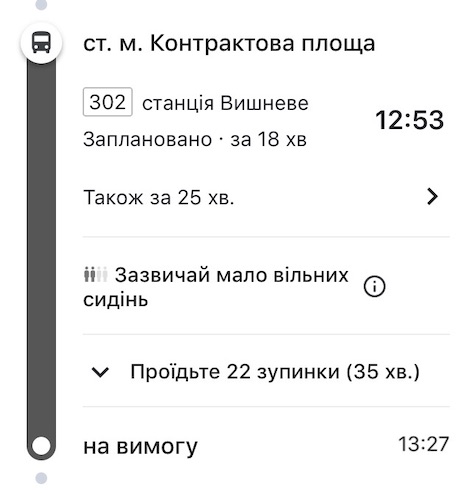 Google Maps протягом кількох місяців збирали інформацію про рівень завантаженості маршрутів у користувачів на основі минулих поїздок. Після завершення поїздки пропонували обрати з чотирьох варіантів – багато вільних місць, мало вільних місць, місця для стояння або тиснява.
