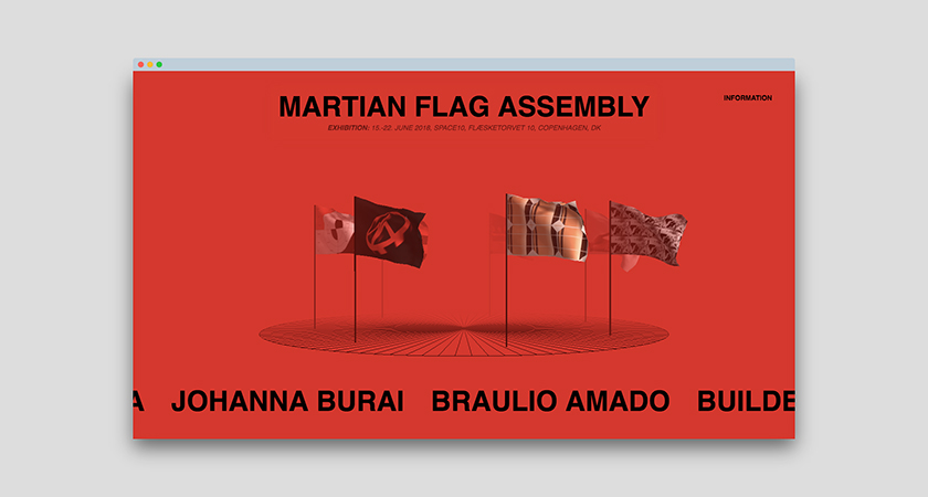 З 15 до 22 червня в Копенгагені буде відкрита виставка в Space10, на якій можна побачити творіння цих семи художників. Варіанти прапорів надрукують в розмірі 2,25×1,5 м, а захід буде супроводжуватися червоними лазерами, димовою машиною та техно-музикою.