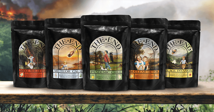 Мадридське агентство Niiiiice запустило сатиричну чайну компанію. Вона пропонує різноманітні трав’яні суміші, які ідеально підходять для різних сценаріїв апокаліпсису.