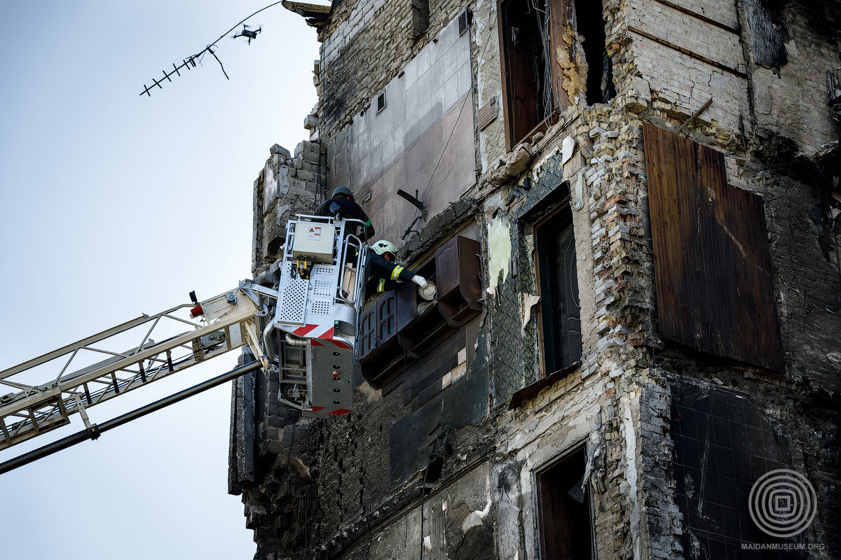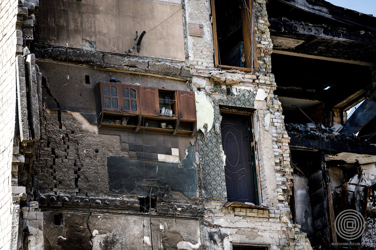 Будівля перебувала в аварійному стані, тому для збереження шафи, яка вже стала символом стійкості українців, було прийнято рішення демонтувати її з дозволу власниці квартири Надії Сватко.