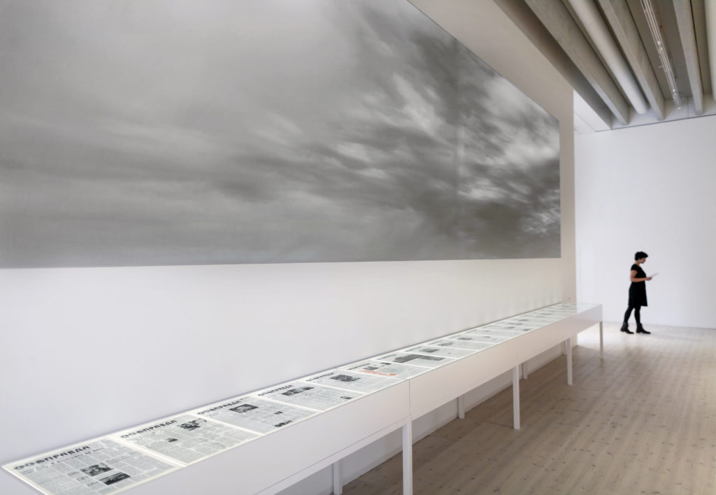 Виставка «Чорної хмари» об’єднає художників і художниць, які працюють із темами масових комунікацій, штучного інтелекту, довкілля та Чорнобиля. Одні з найвідоміших об’єктів в експозиції – інтерактивна інсталяція «Скляна кімната» німецького колективу Tactical Tech, що ілюструє механізми збору персональних даних і проблему приватності в інтернеті, та робота Сюзан Шупплі «Уповільнений розпад»: передовиці газети «Правда», що виходили протягом 20 днів з дати аварії на ЧАЕС до моменту офіційного повідомлення про неї, художниця розмістила під великим відео радіоактивної хмари.