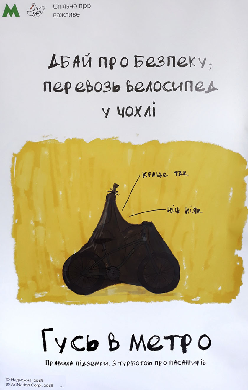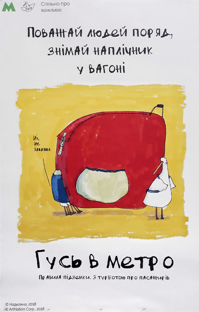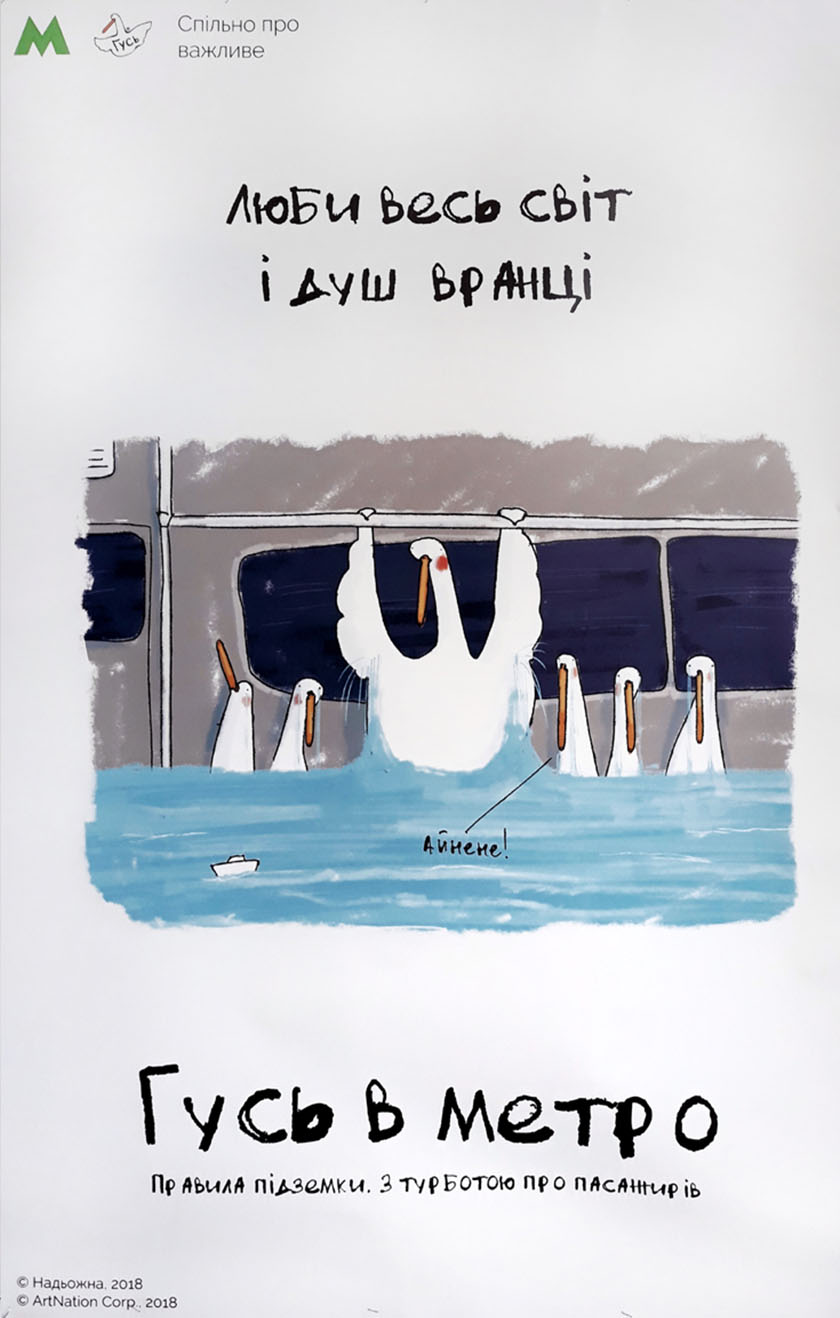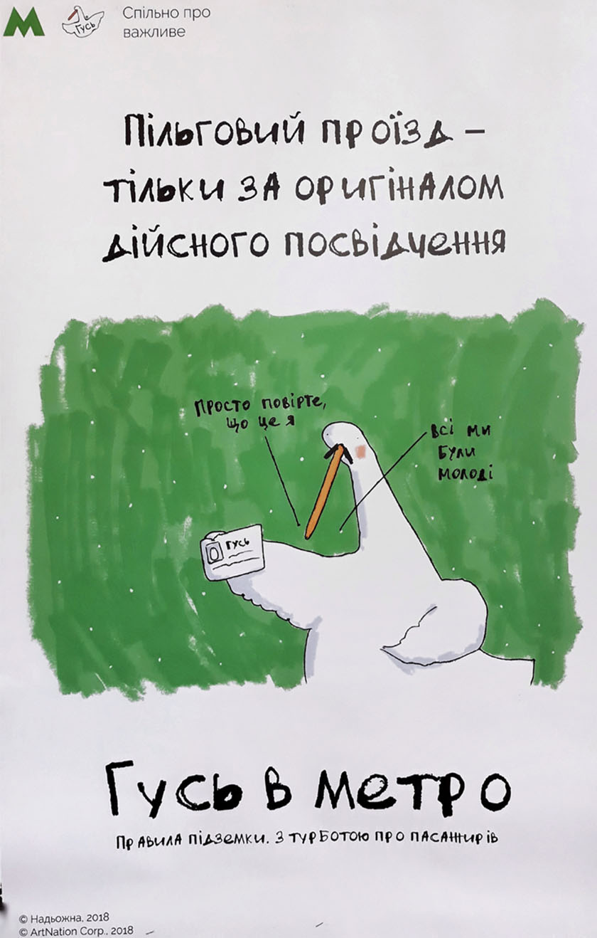 Найпопулярніший вітчизняний фейсбук-персонаж Гусь на постерах у столичному метро буде давати поради щодо поведінки у підземці, закликати до ввічливості та, звісно, жартувати.