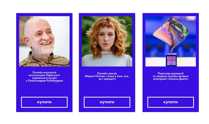 Серед іншого можна придбати відвідування музею, який буде відкрито тільки для вас. Гроші допоможуть закладу вже зараз, а ви прийдете в музей великою компанією після карантину. Окрім цього, серед продуктів супермаркету будуть ті, якими можна скористатися прямо зараз, наприклад, онлайн-вечірка афтепаті, що відбудеться одразу після нагородження української кінопремії «Золота Дзиґа».
