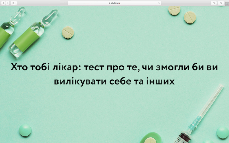 Дедалі більше українців у випадку хвороби вирішують лікуватись самостійно і не звертатись до лікарів. Пропонуємо вам на кілька хвилин відчути себе лікарем та перевірити, чи справді це хороша ідея – без належної освіти лікувати себе та інших людей.