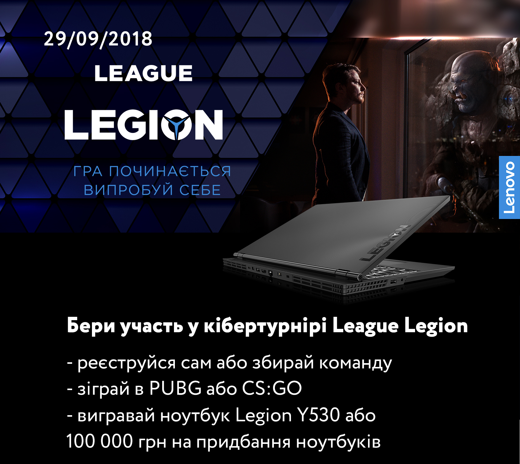 Бери участь у великому кібертурнірі для непрофесіоналів League Legion від Lenovo