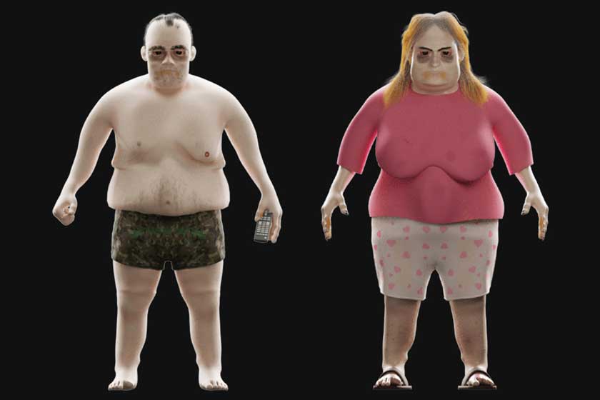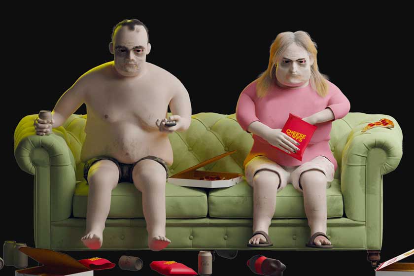 Дослідники сконструювали тривожні цифрові скульптури, що ілюструють фізичний стан людей, які годинами переглядають телебачення та стримінги. Створення тривимірних моделей замовив OnlineGambling.com.  Вони показують, яких фізичних уражень може з часом зазнати людський організм через відсутність спорту, неправильне харчування та малорухливий спосіб життя.