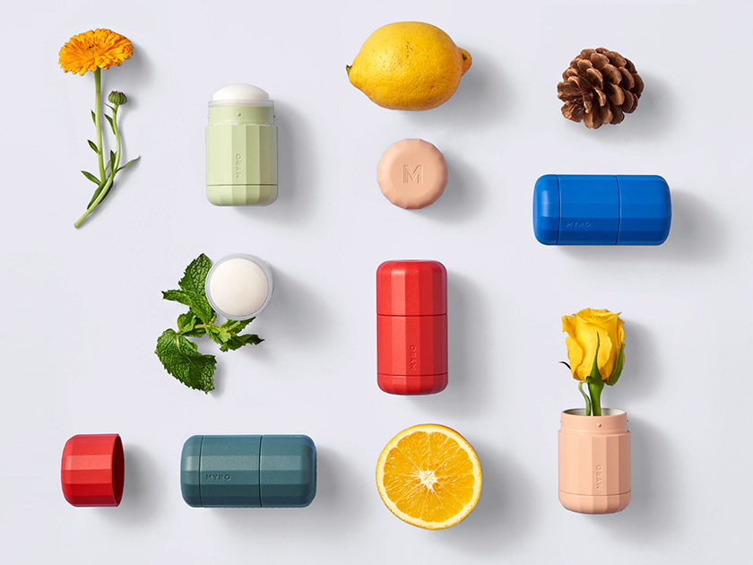 Система, яку розробили спеціально для компанії Myro, складається з пластикового довговічного корпусу, контейнера, який вставляється всередину та підлягає переробці, а також безпосередньо самого дезодоранту. Форма корпусу призначена для міцного захвату в руці, а також запобігає відкочуванню засобу при падінні. Замінні контейнери повністю придатні для повторного використання, а сам засіб містить природні компоненти без алюмінію.