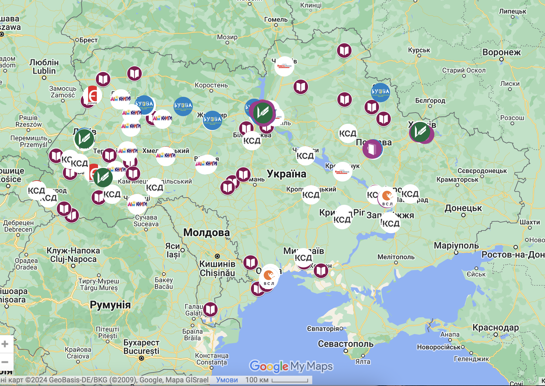 Мапу створила студентка КНУ ім. Тараса Шевченка Катерина Плевако за допомогою інструментів Google Maps. Найближчим часом ініціатори планують нанести на неї літературні музеї та книжкові фестивалі.
