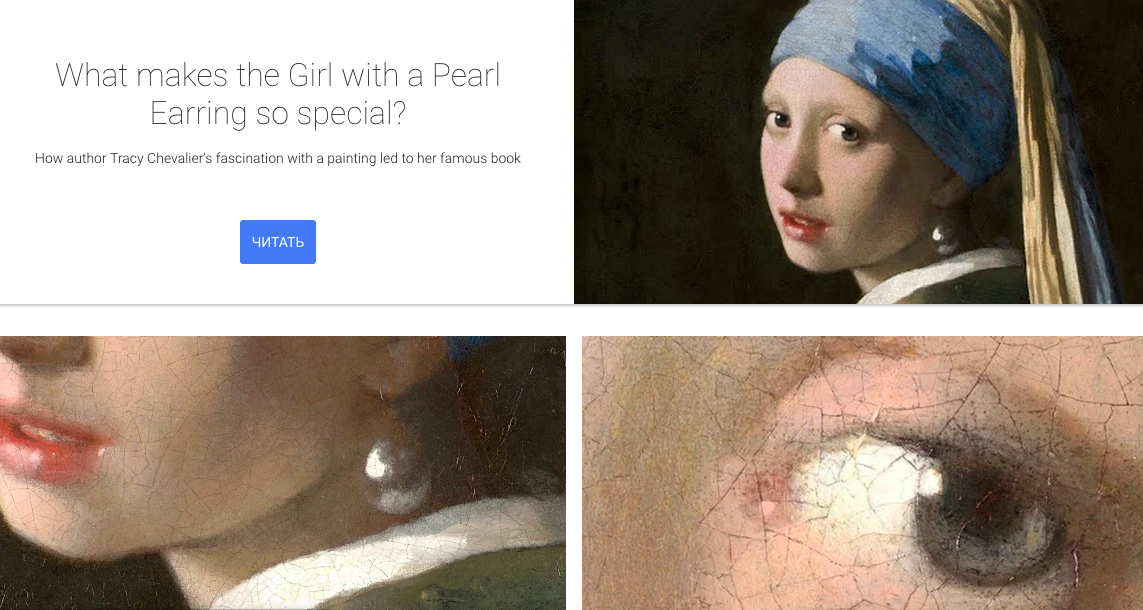 У віртуальній галереї одного з найвидатніших європейських живописців усіх часів можна розглянути всі його роботи в найдрібніших подробицях. Заради цього 18 музеїв з усіх куточків світу, а також приватні колекціонери з семи країн надали копії полотен для створення цифрової експозиції Яна Вермера. Тепер у спеціальному місці (ось воно) можна не тільки подивитися, але й почитати про творчість художника та його внесок в історію.