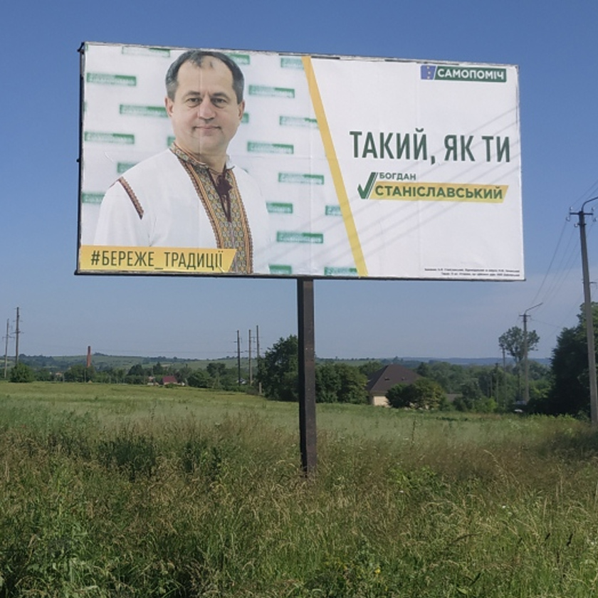 Ще один яскравий приклад – білборд кандидата від Об’єднання «Самопоміч» Богдана Станіславського з майже однойменним гаслом: «Такий, як ти».
