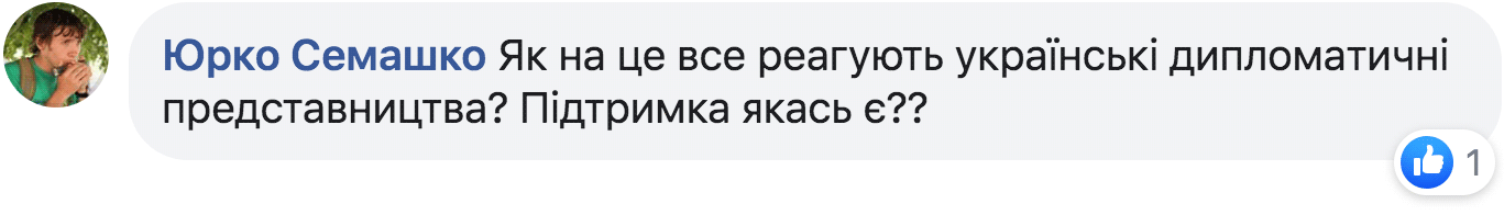 – Як на це все реагують українські дипломатичні представництва, підтримка якась є?