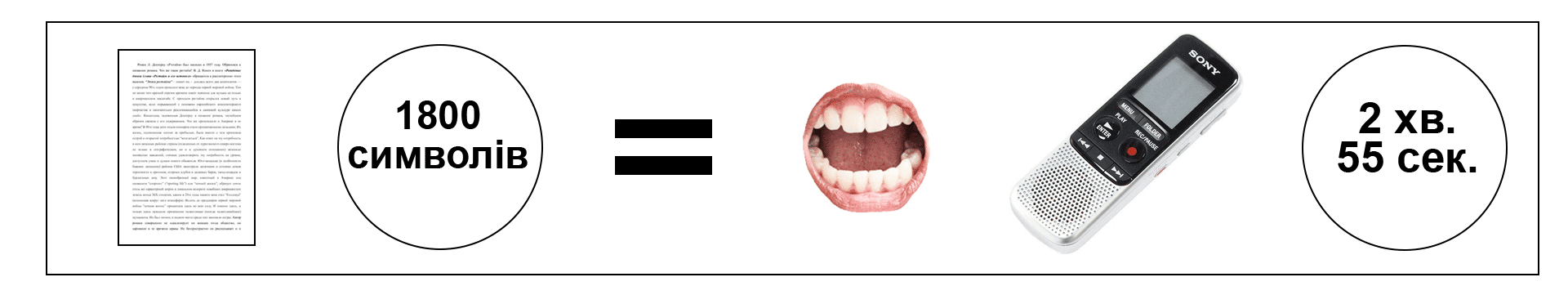 14. В середньому один аркуш А4 – це 1800 символів без пробілів. Щоб проговорити цей текст у класичному дикторському темпі, знадобиться 2 хвилини і 55 секунд.