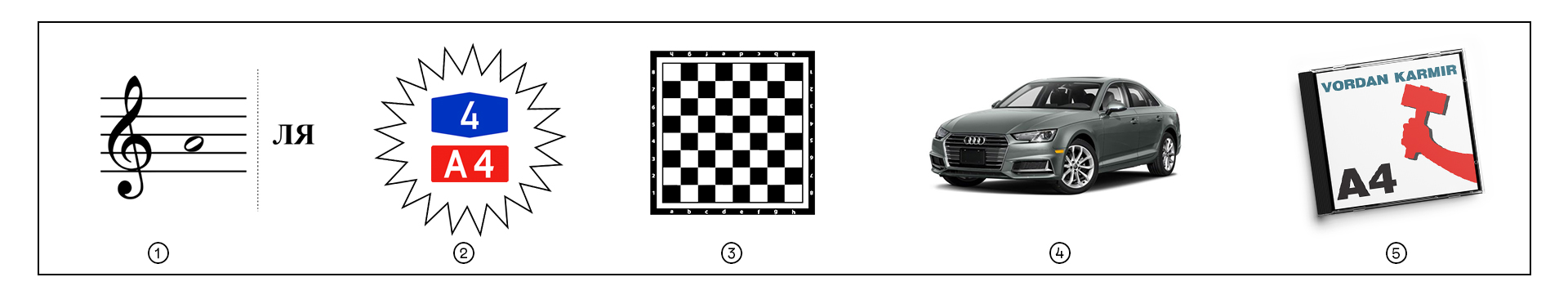 10. А4 – це не тільки папір. Ще це нота ля першої октави ➀, назва автобанів у Європі ➁, клітина на шаховій дошці ➂, автомобіль Audi➃ й навіть альбом 2013 року вірменського метал-гурту Vordan Karmir ➄.