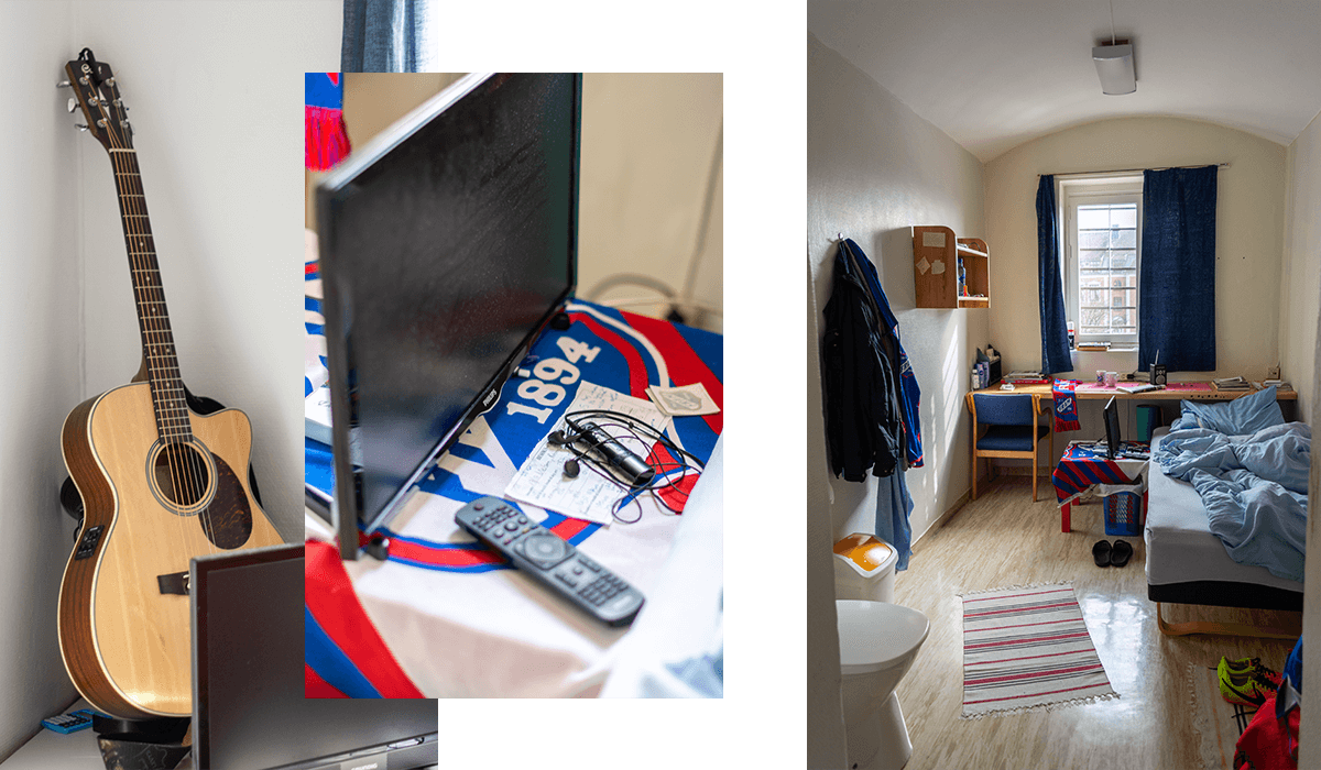 У кімнатах ноутбуки, телевізори, книги, багато футбольної атрибутики, а на стінах дошки з листами та фотографіями рідних. У вільний час ув’язнені часто грають у волейбол у дворі в’язниці. Тут же вони мають єдину можливість покурити.