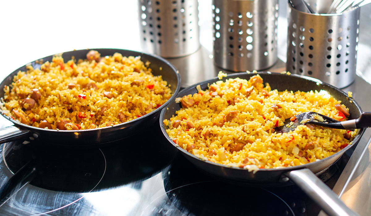 Директор веде мене далі, на кухню. Мікрохвильові печі, кавоварки, гриль, сучасні витяжки, плити та духовки. Бачити це – дуже неочікувано. Так зазвичай виглядають кухні у хороших київських ресторанах. На плитах – плов, запах від якого розповсюджується приміщенням.