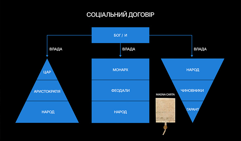 Дуже давно люди вірили, що влада — це дарунок від бога. Дається він конкретному царю, фараону, комусь, хто здається надприродним та унікальним. І прості люди точно не зможуть бути такими, тож унікальних треба слухатися. Революції в Європі, Французька революція, Перша війна за незалежність в США — все це трансформувало соціальний договір, і обраності вищими силами стало недостатньо, щоб отримати владу.