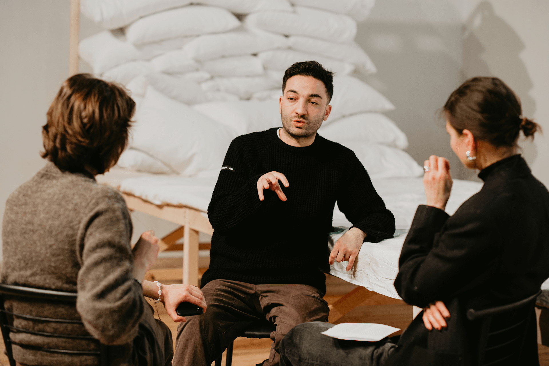 Там у пʼєсі дуже цікавий хід, коли в першій сцені поліція затримує персонажів — перебраних у жіночий одяг хлопців. А далі — наступним кадром — вони лежать мертві на ліжках у морзі, і в результаті слідства виявляється, що всі вони воювали. Мабуть, режисура — це все ж таки простір, у якому ти втримуєш матеріал, тобто те, з чого ліпиш, доки не вивчиш його достеменно. Простір, у якому чужа історія стає рідною. Так було з цією пʼєсою, так було з «Буною» Віри Маковій. Я читав, плакав і не розумів, чого. Бо, зрештою, хороша література це річ, ґрунтована на спільності людського чуття.