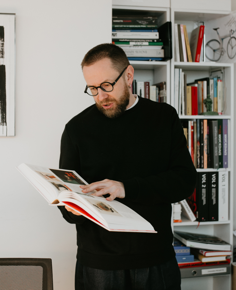 Я думаю про те, що саме впливає на естетичне бачення — і це завжди сума досвідів. Маю визнати — мене приваблює бруталізм 60–70-х років. Це й архітектура, й усі ті книжки з однаковими палітурками, поганими фото й чорно-білими історіями. Я памʼятаю, як купив свій перший глянець на Почайній, — це було ніби вперше спробувати МакДональдз! Увесь той яскравий потік раптом виливається на тебе одним махом. Десь серед того я побачив справді кльово зроблену книжку, яка відрізнялася від усього, що мені раніше траплялося, з написом «Дизайн» — тоді я й захотів бути дизайнером.