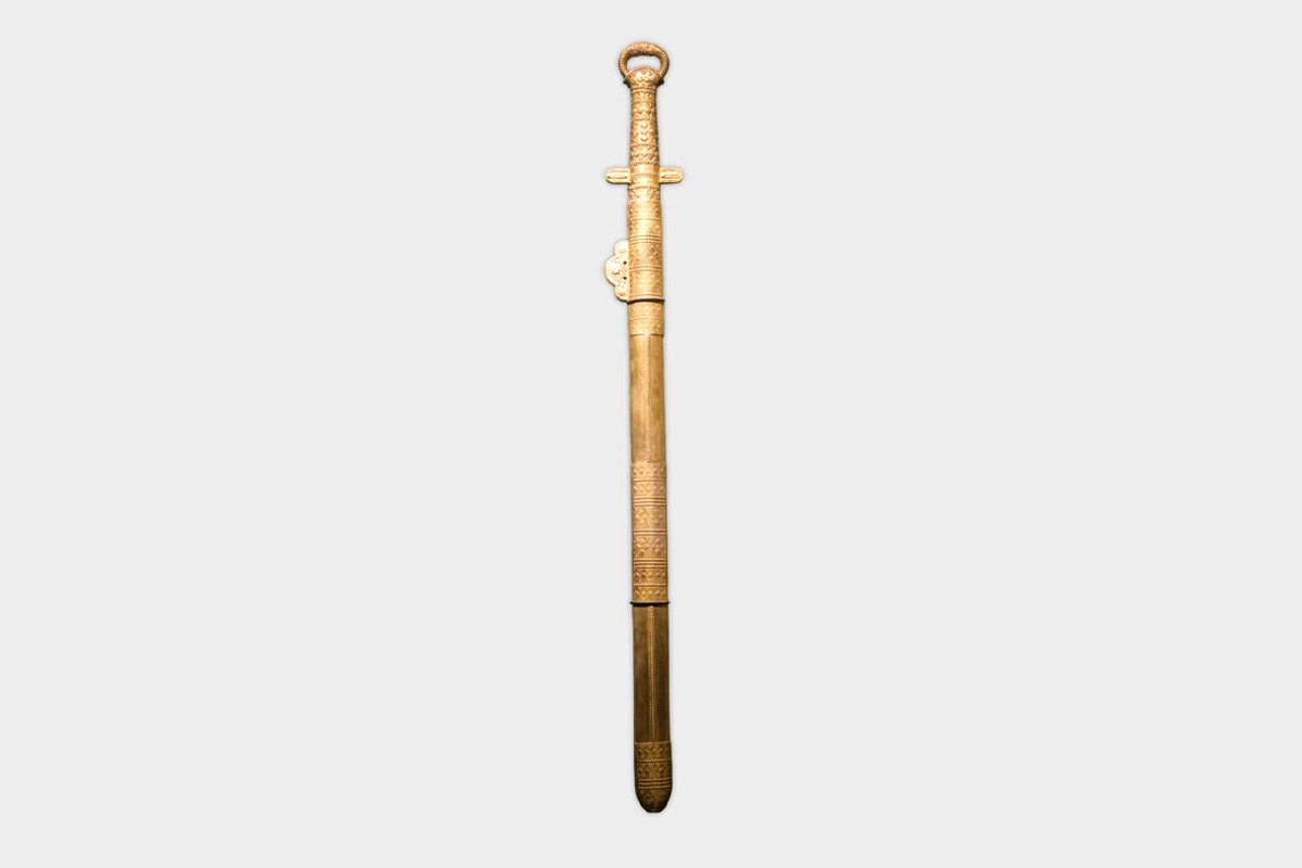 Одним із головних артефактів дослідники майже одразу назвали саме предмет зброї — так званий меч Кубрата. Хан Кубрат був одним із нащадків знаменитого вождя гунів Аттіли й шанується як один із засновників болгарської державності. Чимало істориків вважають, що його поховання знаходилося десь саме в районі сучасної Полтави, і припускають, що Перещепинський скарб — це і є могила великого правителя. Втім, зараз меч Кубрата належить не Україні й не Болгарії, а лежить в Ермітажі.