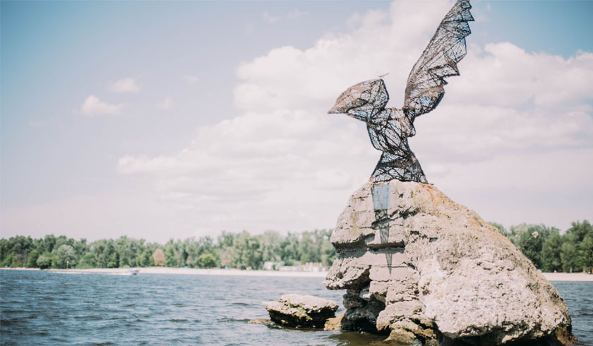 До речі, цей досить великий пам’ятник (розмах крил – 5 метрів!) встановлений на вцілілій опорі старого моста, про який ми говорили кількома абзацами вище.
