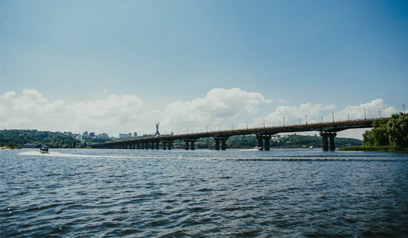 Перший у світі суцільнозварний міст завдовжки 1543 метри. Безпосередню участь у проєктуванні та будівництві моста брав академік Євген Оскарович Патон, на честь якого названо цю споруду. Сину Євгена Оскаровича – Борису Євгеновичу – зараз 101 рік, він і досі є президентом Національної академії наук України. Ми проходимо під мостом двічі, висота нашої щогли 8 метрів, висота арок мосту – 9 та 14 метрів, тому проходимо легко. Але перших десять разів нашим нервам було достатньо лоскотно.