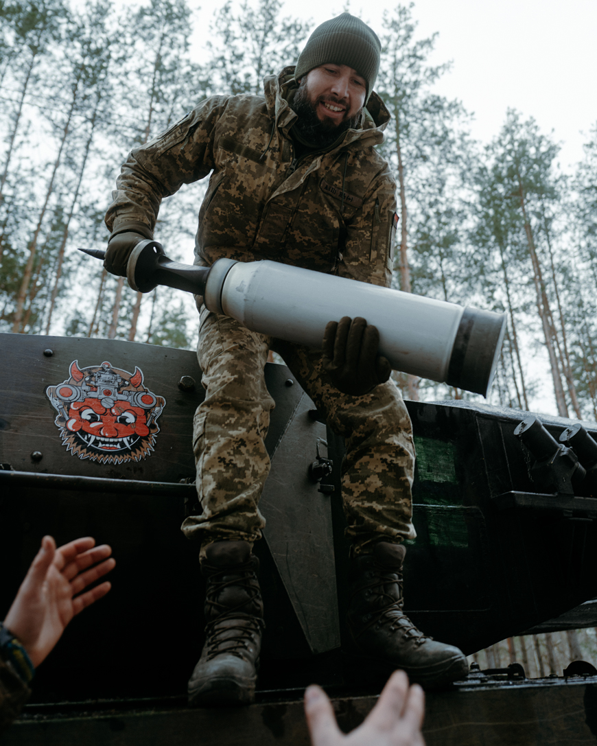 У нас 2 основні типи снарядів — бронебійний і осколково-фугасний. Перший — проти важкої техніки, другий — легкоброньовані цілі та піхота. На навчаннях заряджали за 5 секунд, у бою ніхто час не рахує, але, думаю, швидше. Є ще кулемет калібром 7,62, прицільна дальність 1,5 км, теж працює добре. Гарна машинка. Щоправда, зараз дефіцит снарядів, осколково-фугасні доводиться економити. Україні точно треба більше снарядів.