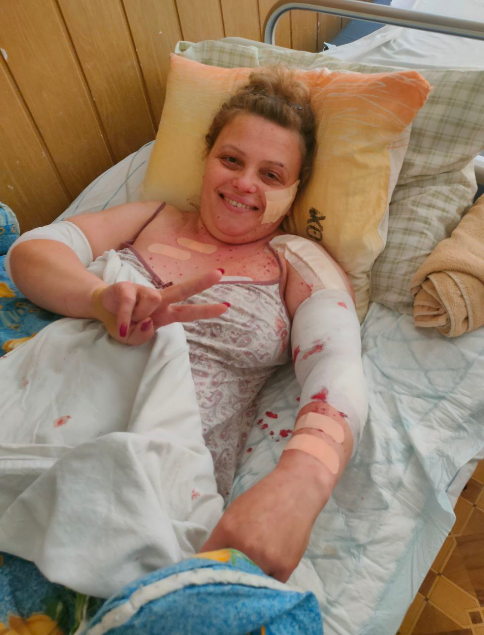 Я назавжди запам’ятала очі того медбрата, який першим мене побачив, коли вибили двері. У нього ще були товстезні лінзи на окулярах, а за ними — переляканий погляд. Вже в лікарні, — а у мене була фантастична зміна лікарів, людей сім навколо крутилося — я зрозуміла, що поранені обидві руки, та ще й в боку коле. Тож мене почали детально оглядати, робити рентген, але до того поміряли тиск. 110 на 60, тобто я була спокійна як удав. Тому що звикла в критичні моменти вмикатися, тільки потім вже можу поплакати та поістерити. Я як собі думала одразу після вибуху: «Пальці рухають? Жива. Кричати можу? Значить, голова на місці». Тому була впевнена, що в лікарні мене оглянуть, зашиють і відправлять додому. Наївна.