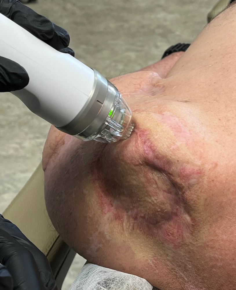 Спочатку ми прокололи курс препаратів і намагалися працювати з лазером, але мені цей варіант не підійшов, адже після процедури неймовірно сильно боліли руки. Дня на три я випадав з робочих процесів, а зараз я не можу собі таке дозволити. Хоча лазер і найкраще справляється з рубцями. Тож пані Катерина почала колоти інші препарати та проходитися по шрамах апаратом, який схожий на тату-машинку. І так потроху рубці стають м’якшими. Вже понад рік я ходжу на ці процедури, процес все ще триває.