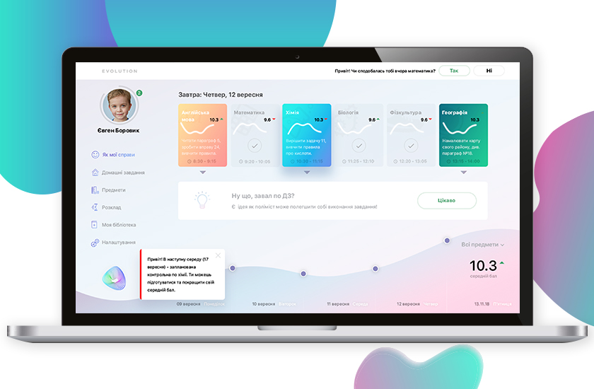 Загалом наш формат значно оптимізує навчальний процес. Наведемо приклад – є, скажімо, учень-інтроверт, якому страшно виходити до дошки і відповідати на запитання вчителя, внаслідок чого він отримує незадовільні оцінки. Психолог виявив цю особливість і ввів її в систему – йому необов’язково ходити до кожного вчителя і розповідати, що потрібно міняти підхід до цієї дитини. Він просто додав цю інформацію, а система сама надсилає викладачеві потрібні меседжі.