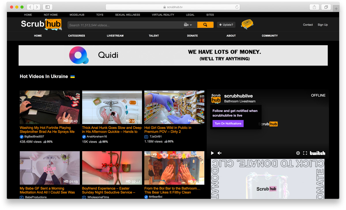 1. Легендарний сервіс Pornhub запустив жартівливий сайт ScrubHub з еротичними, сміливими та, безумовно, вологими відео з миттям рук. Дуже гаряче, тільки якщо комунальники водопостачання не відключили. Збуджує фантазію та нагадує про особисту гігієну.