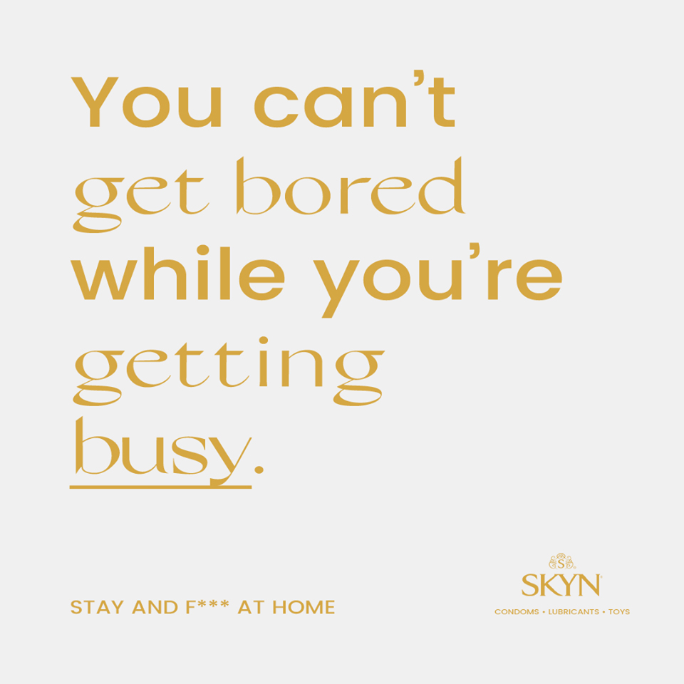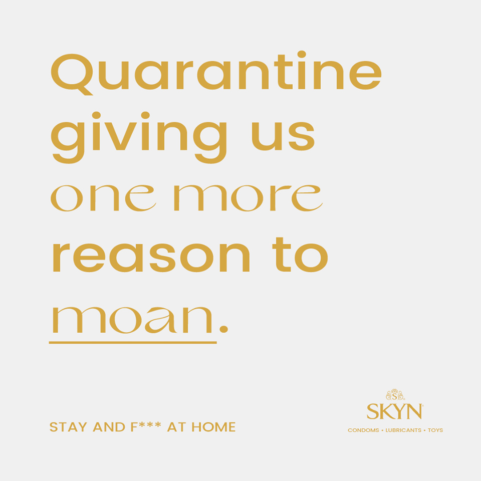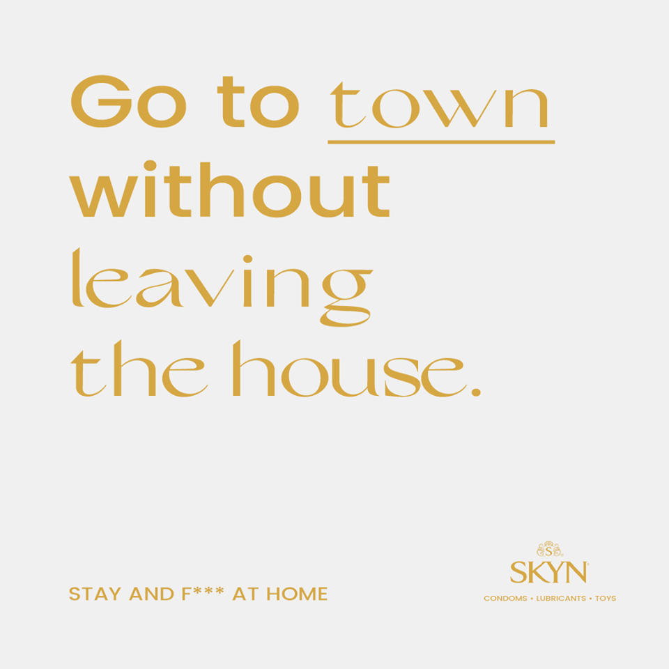 6. Несподівано допомога прийшла, звідки її не чекали. Бренд презервативів SKYN розробив плакати, в яких закликає залишатися вдома та займатися більш приємними речами, ніж наражати на себе небезпеку.
