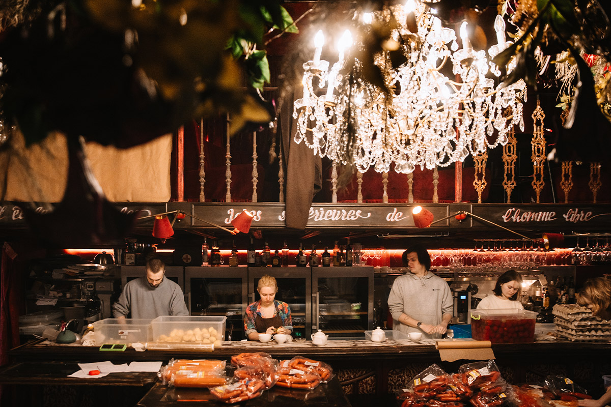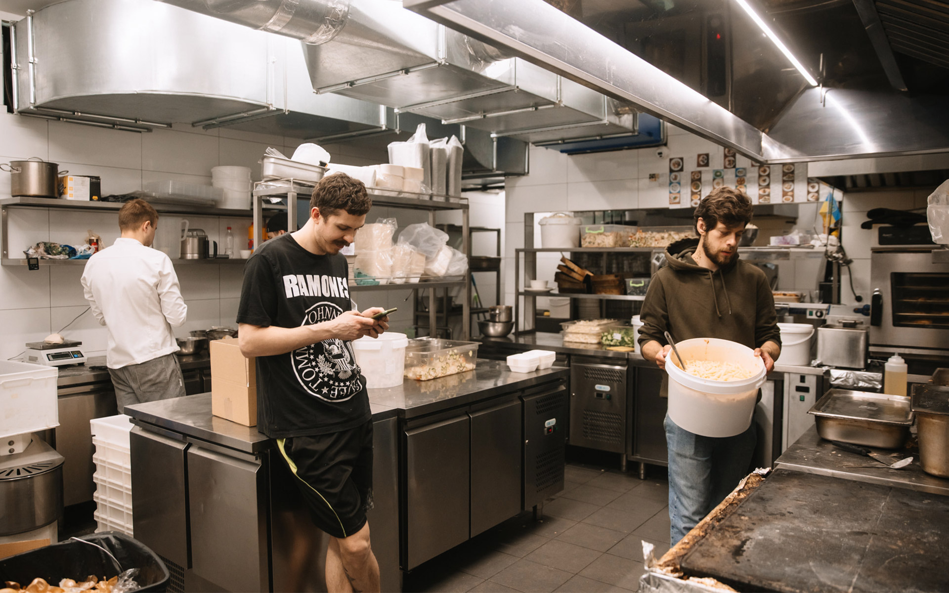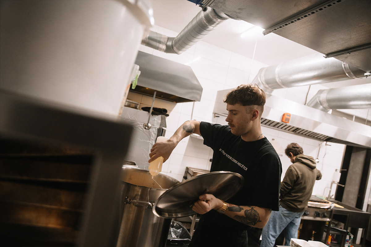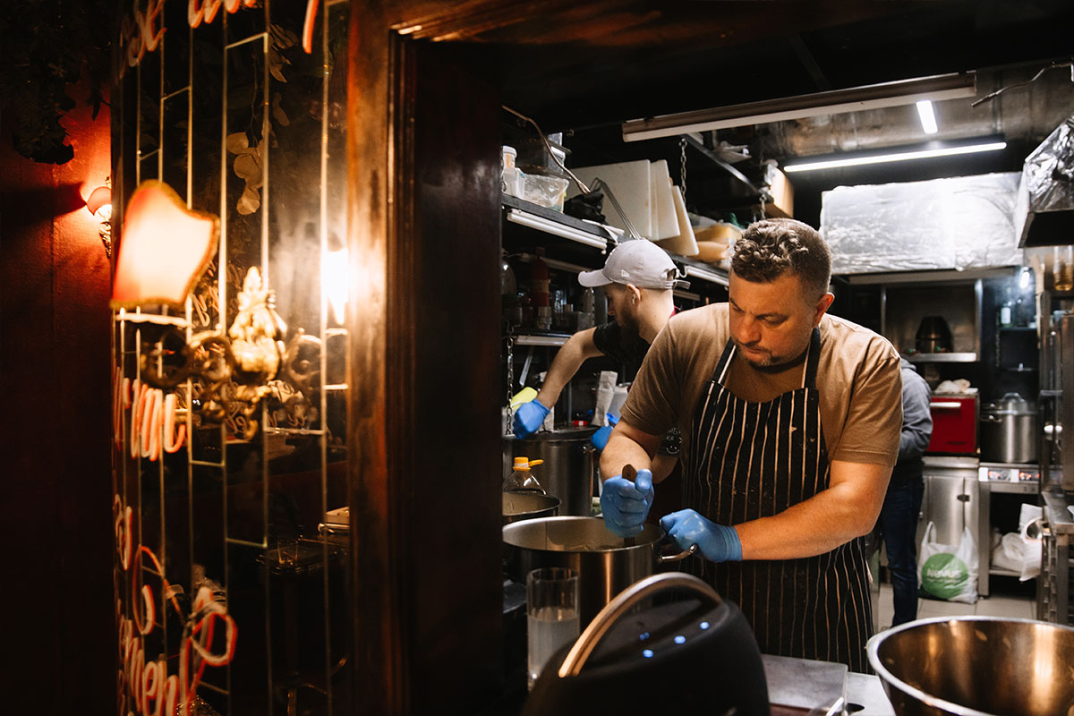 В команді налічувалося близько 15 людей. З них 5 кухарів, інші хлопці — пакувальники та помічники на кухні. З нами працювали різні люди за професіями, декілька айтішників, фотографів, троє переселенців, включаючи мою сестру, яку ми забрали з Ірпеня. А двоє переселенців навіть жили в нашому ресторані.