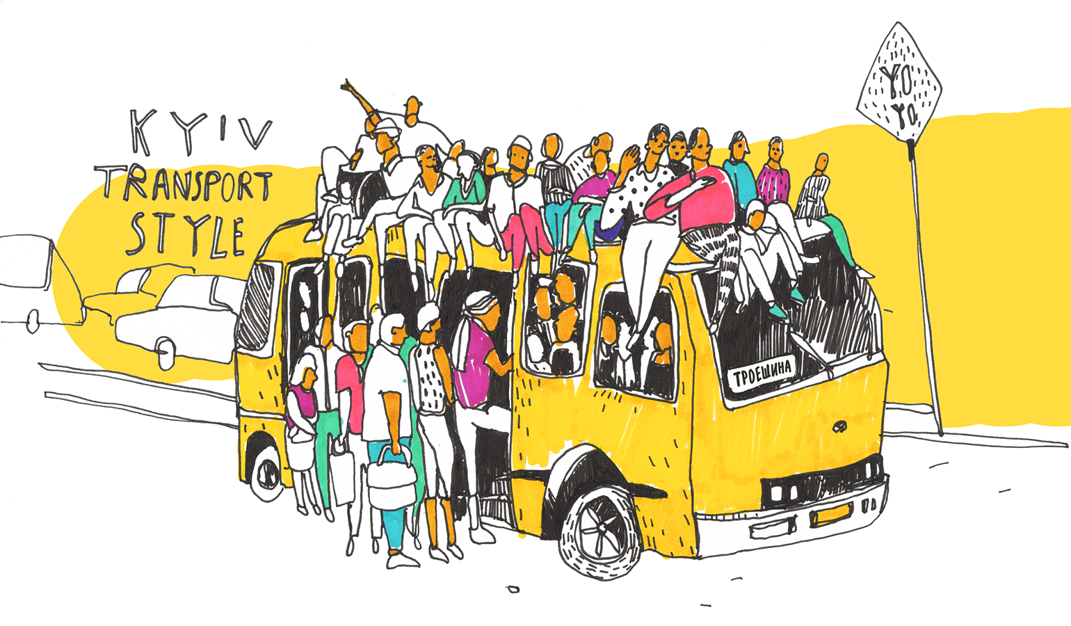 Иллюстрции рисовали: «Шахматы в парке Шевченко» – Грася Олийко, «Фуникулер» – Ирина Костышина, «Царь-балконы» – Грася Олийко, «Маршрутка Троещину» – Лера Схемка, «МАФы» – Александра Найденова, «Кличко» – Анна Поли, «Качалка на гидропарке» – Максим Павлюк, «Водные экскурсии по Днепру» – Дарья Мацола, «Валерий Винарский» – Ульяна Виничук, «Танцоры на театральной» – Анна Поли, «Трамвай сквозь лес в Пущу» – Анна Звягинцева. Кураторы – Настя Джинджер и Лера Схемка.