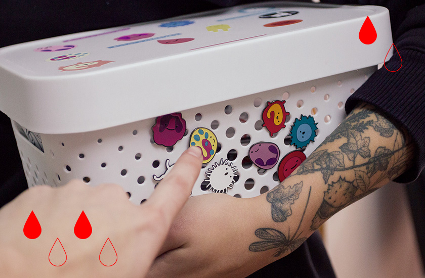 Після цієї донації мені стало соромно. Соромно через те, що зробила це тільки зараз, а до цього прикривалася відмовками та помилковою думкою оточення. Потім прийшли захват, гордість, неймовірне щастя та бажання зробити більше, яке було настільки сильним, що буквально на наступний день я стала частиною благодійного проекту «Середи в Охматдиті». Це група ентузіастів, яка щосереди ходить з добровольцями, які хочуть здати кров, в Охматдит і намагається зробити все, щоб процедура пройшла максимально приємно – створює загальний чат на всіх потенційних донорів, розповідає про протипоказання та попередню підготовку, зустрічає й супроводжує під час всього процесу, годує домашнім вівсяним печивом, робить фотографії та, що найцікавіше, видає фірмовий значок із клітиною крові. Його можна отримати тільки в разі успішної донації та ніяк інакше – це своєрідний трофей і розпізнавальний знак. Клітин крові 9, а нещодавно до них додалися ще й шкідливі компоненти, так що можна зібрати цілу колекцію.