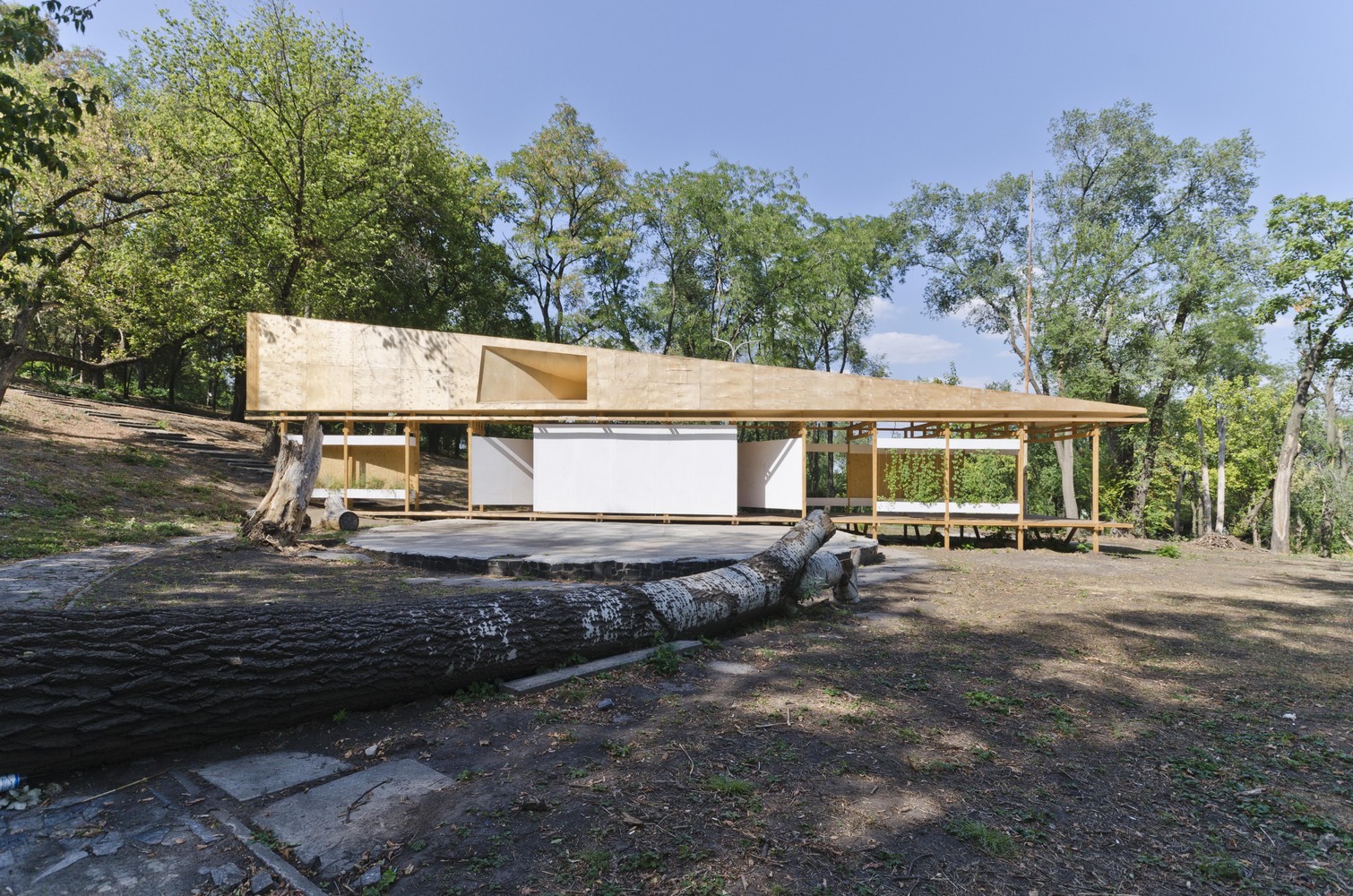 Сцена – це публічний простір у парку Дніпра, де кожен може провести власну подію. Глобально це колаборація архітекторів з України, Польщі, Данії та Італії в поєднанні з колективною творчою енергією дніпрян, використана для ревіталізації закинутого простору.