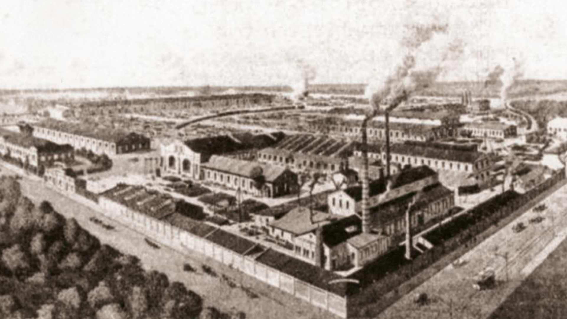 Вид на Перший київський машинобудівний завод в минулому і сьогодні.