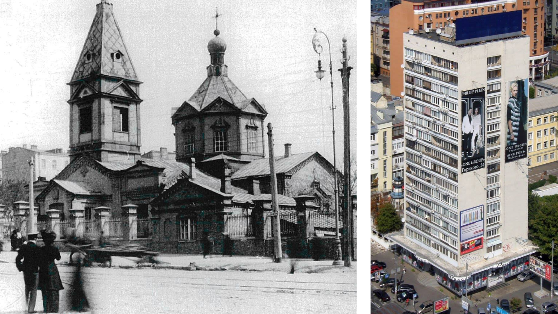 Місто проєктували за таким принципом, що в будь-якій його точці можна було побачити храм. Наприклад, з сучасної Соломʼянки було видно Володимирський собор, а на перетині вулиць Великої Васильківської та Жилянської на фоні низької забудови виділялась дерев’яна Троїцька церква. Вона збереглася до 1960-х років, коли комуністи знесли її буквально за одну ніч. Сьогодні на її місці за адресою Велика Васильківська, 51 стоїть перший у Києві шістнадцятиповерховий житловий будинок.