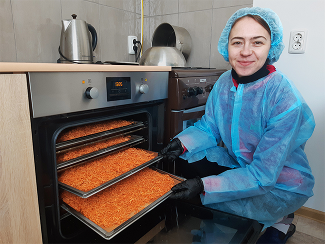Коли в Україні почалася повномасштабна війна, я активно включилася в допомогу своїй країні та задумалася, яким чином моє виробництво також може підтримати людей, які постраждали від війни. Тому ми почали виробляти сухі страви миттєвого приготування, які стануть у пригоді в складних умовах. Їх потрібно лише залити окропом — і вуаля. Я почала вивчати різну інформацію щодо приготування сухих страв, розробляти рецептуру і тестувати її, так першим став — український борщ з м’ясом.