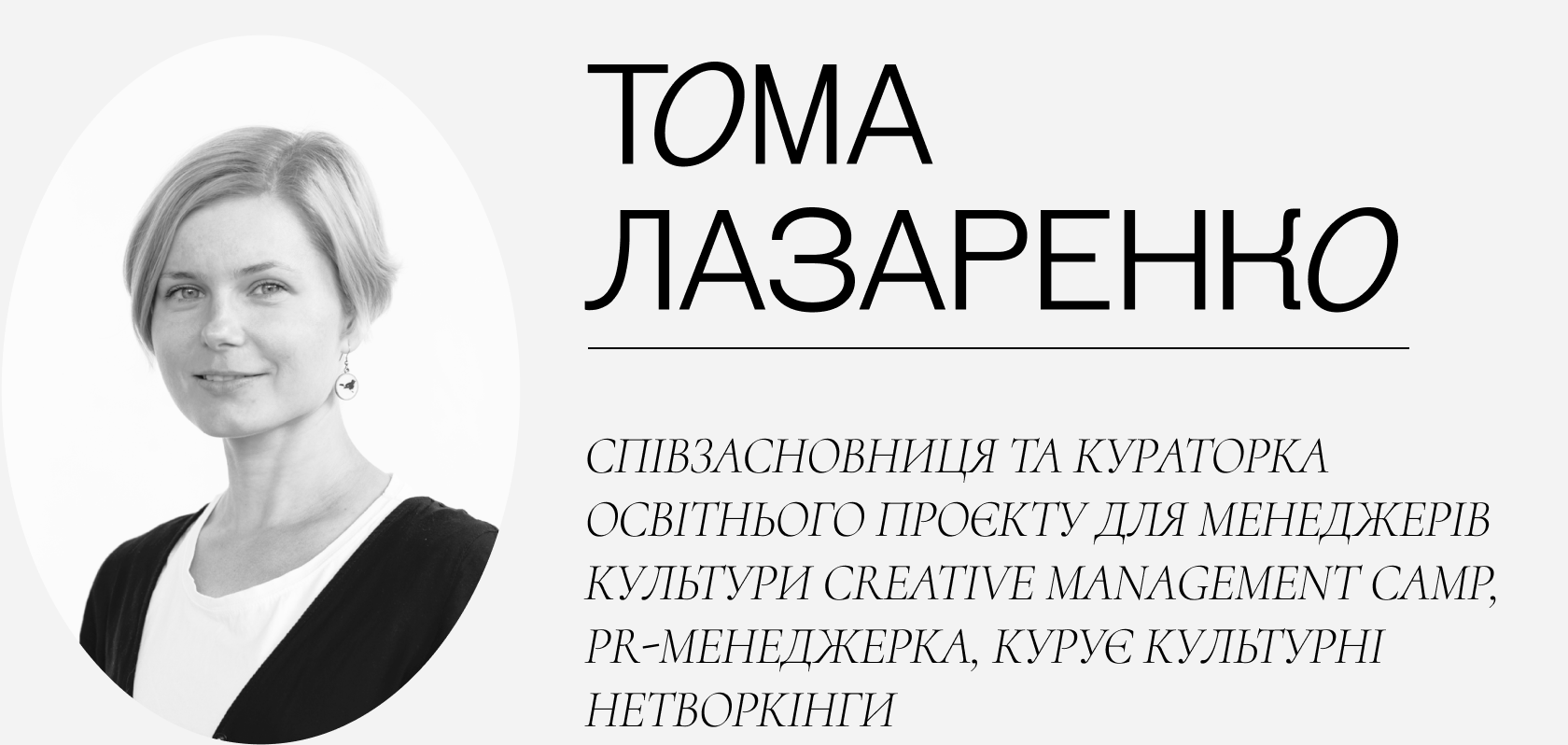 Креативна індустрія в Україні — це не той сектор, де ви можете «заробляти більше» займаючись проєктами виключно однієї інституції. Тож або ви маєте фінансову базу, на яку можете спертися, і тоді робота в культурному секторі для вас як самореалізація. Або доведеться дуже сильно любити те, чим займаєтеся.