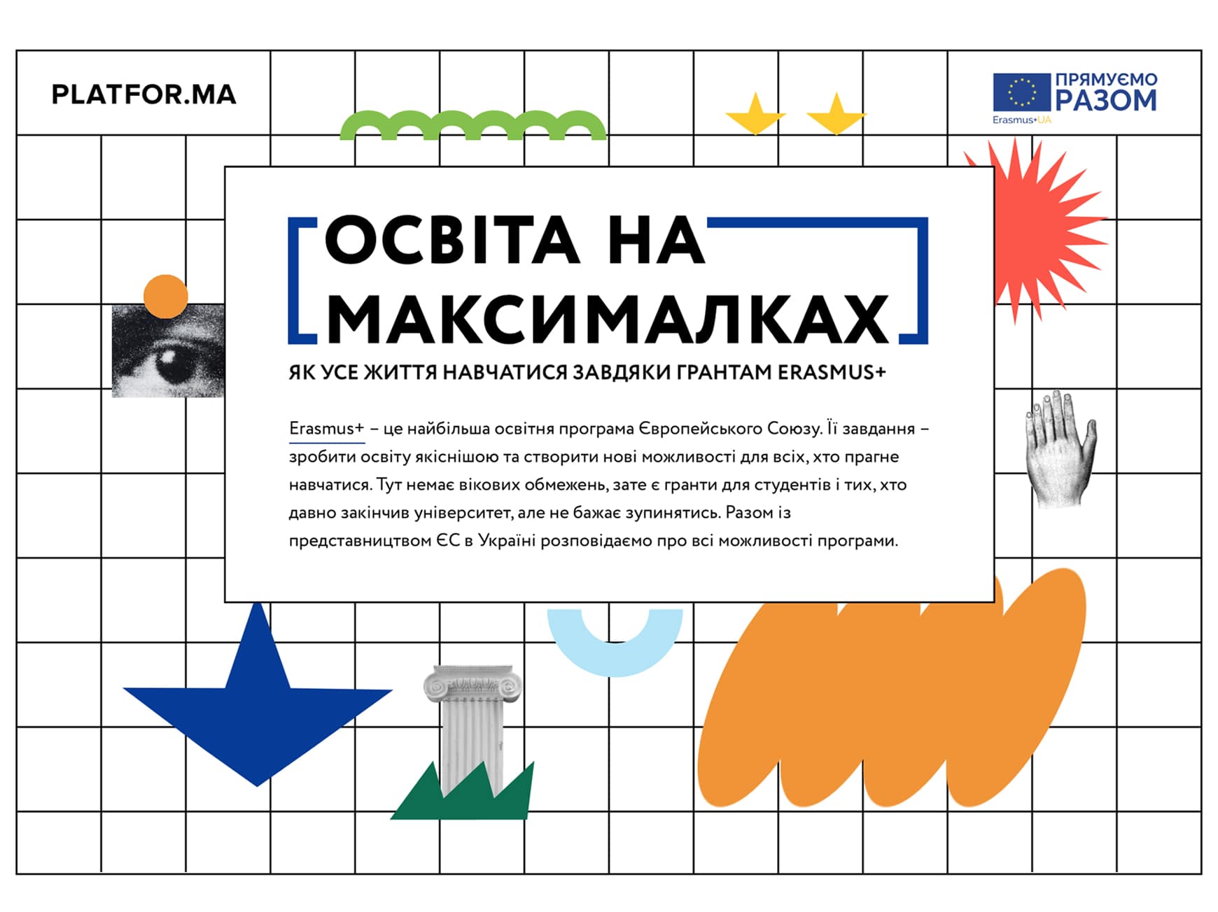 Навчання за кордоном – це давно вже не фантастика, адже в сучасному світі реально просто, безкоштовно й із задоволенням отримати освіту або нові знання в іншій країні. Ми вирішили це довести та розробили величезний проєкт з найбільшою освітньою програмою Європейського Союзу «Erasmus+», у якому розповідаємо про доступні для українців можливості, внесок вітчизняних вчителів у розвиток світових університетів, а також реальні історії людей, які спробували та не пожалкували.