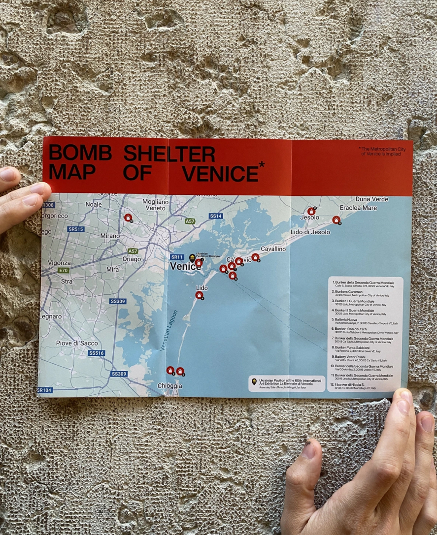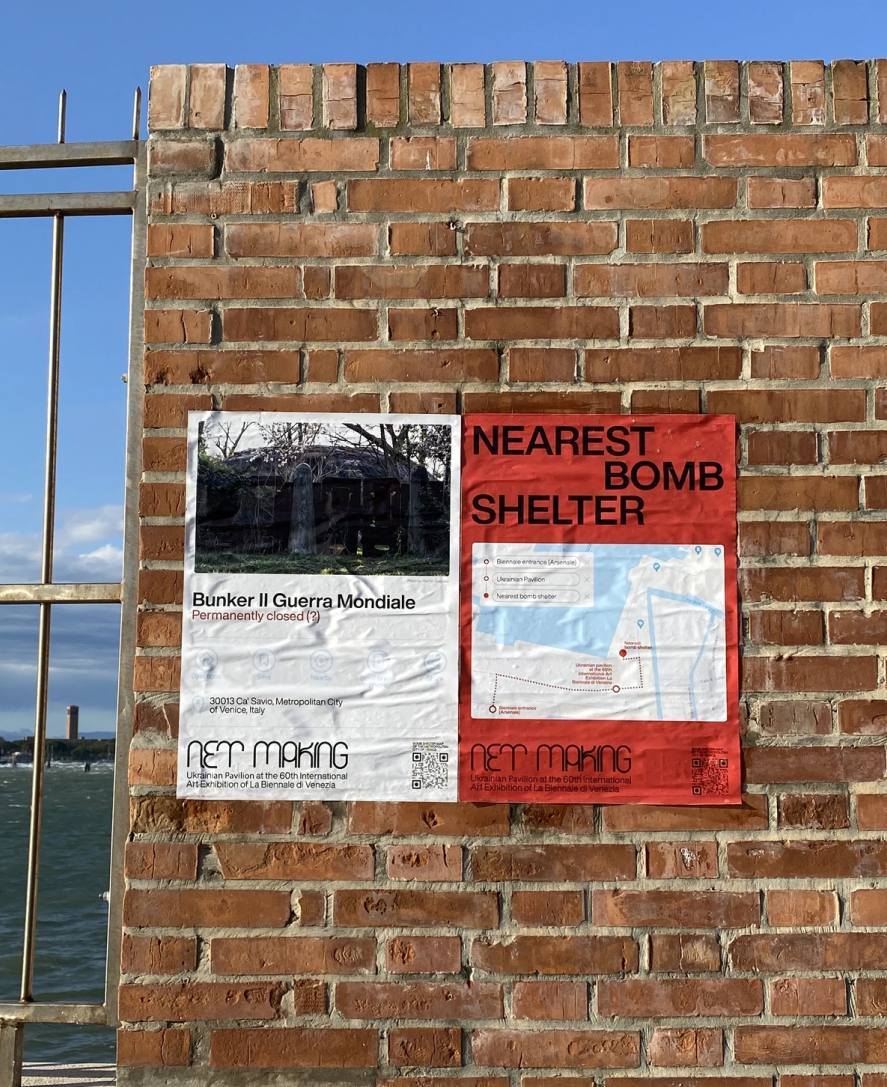 Інший приклад — коли навесні цього року на Венеційському бієнале команда українських креативників розклеїла по всьому місту постери із розташуванням бомбосховищ у Венеції. Основне повідомлення цього проєкту — більшість українців до початку вторгнення не знали про укриття, але зараз у жителів інших країн є можливість підготуватись допоки України боронить Європу. За словами СЕО Bickerstaff.734 Вероніки Селеги, після цього представники різних європейських міст почали звертатися з проханням розробити для них схожі карти.