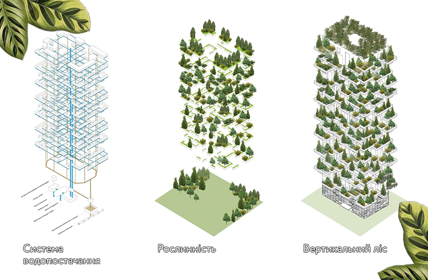 Вертикальний ліс вирішує низку проблем: поглинає СО2, виробляє кисень, пом’якшує мікроклімат, збалансовує екосистему і є середовищем життя для тварин.