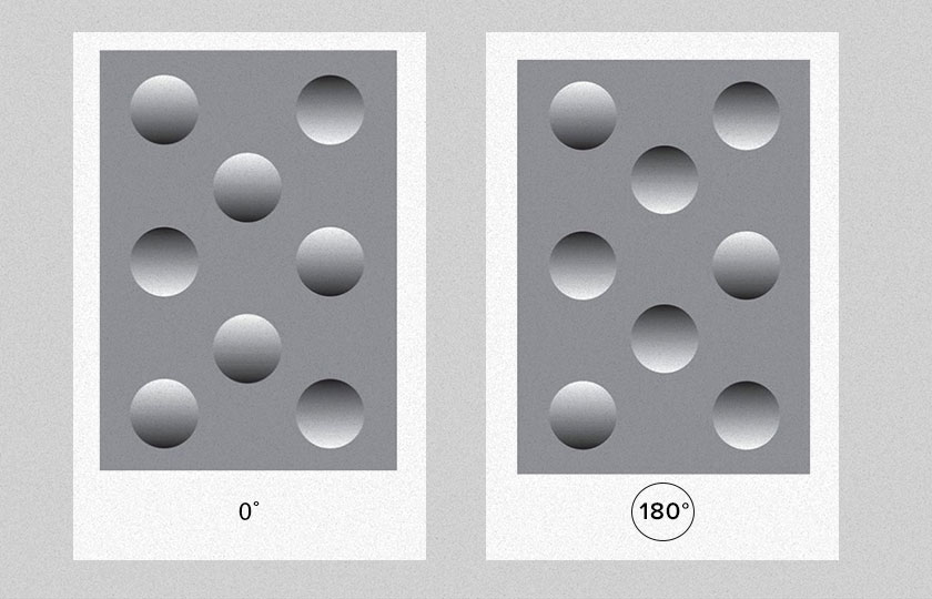 Поглянувши на ілюстрацію з доміно, ви, напевно, побачите, що п’ять крапок є опуклими, а три інші – втиснутими. Та насправді це все лише гра тіней, а ілюстрація просто є рівною поверхнею.