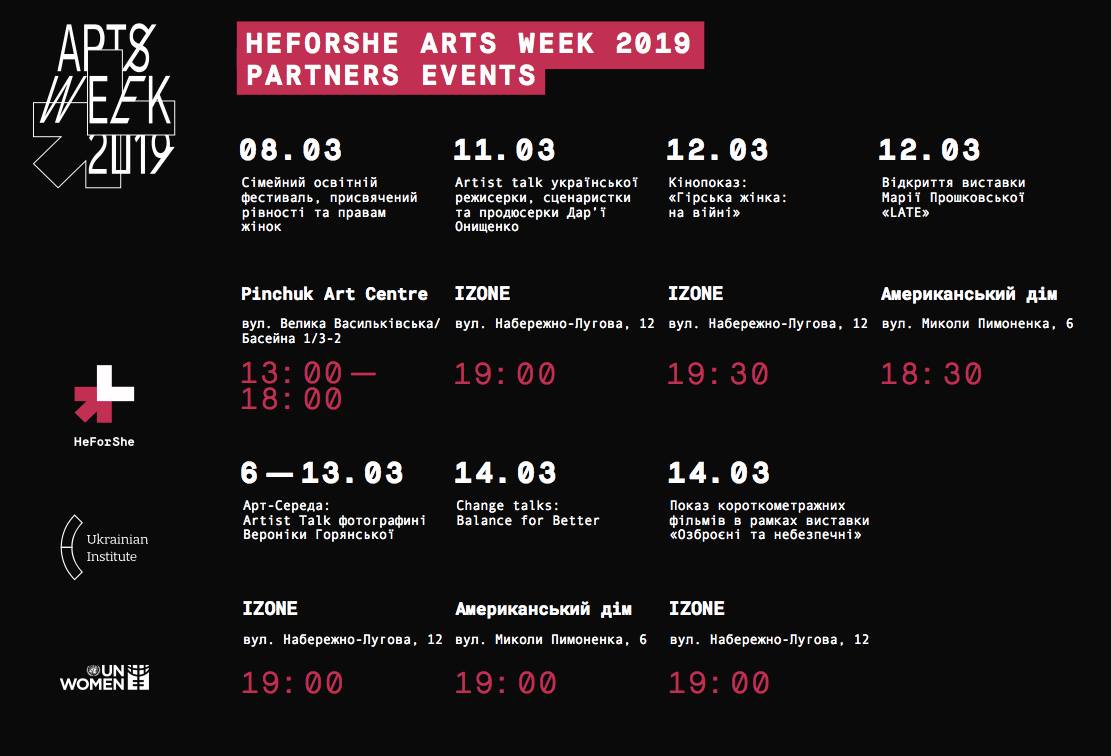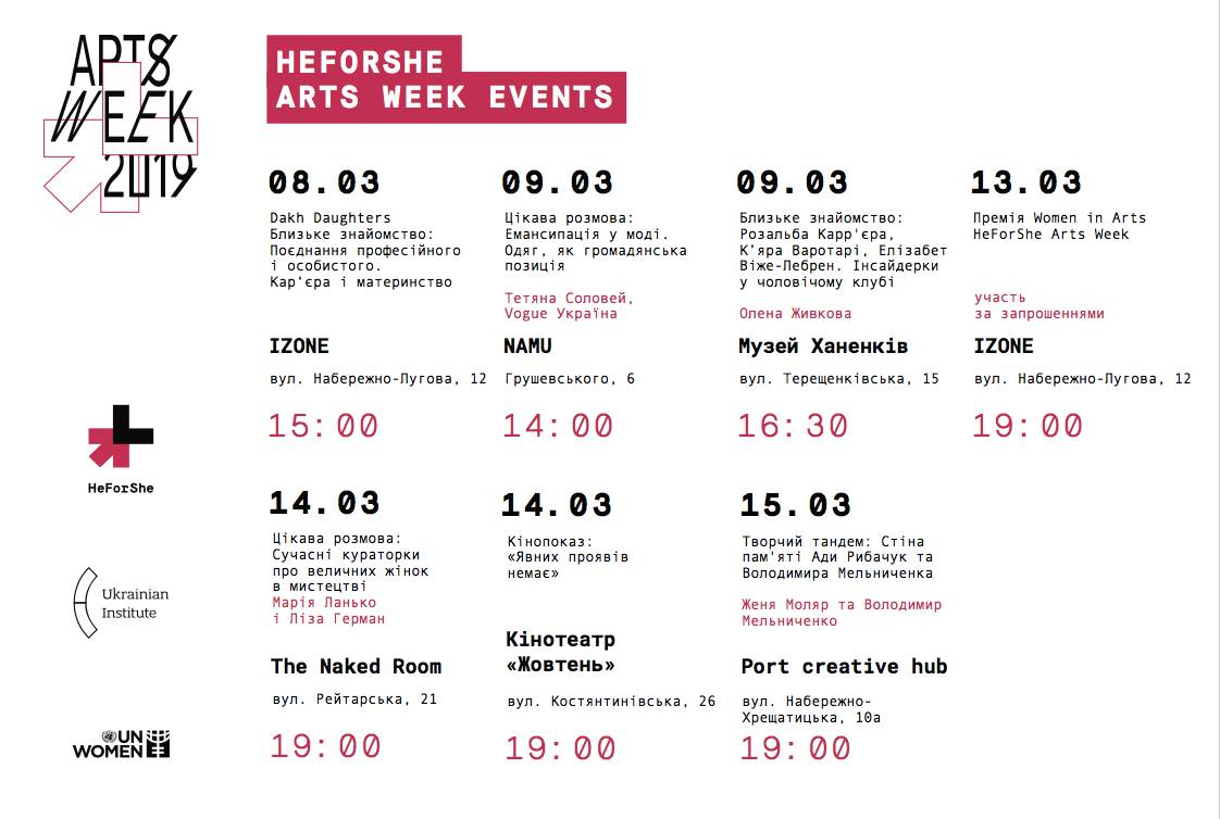 Інтерактивний гід подіями HeForShe Arts Week 2019 можна подивитися ось тут.