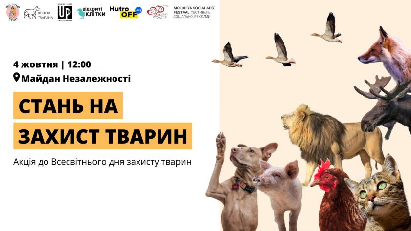 4 жовтня відзначають Всесвітній день тварин. Цього ж дня громадські зоозахисні організації та небайдужі вийдуть о 12:00 на Майдан Незалежності, щоб заявити на всю країну: тварини мають право на гуманне ставлення.