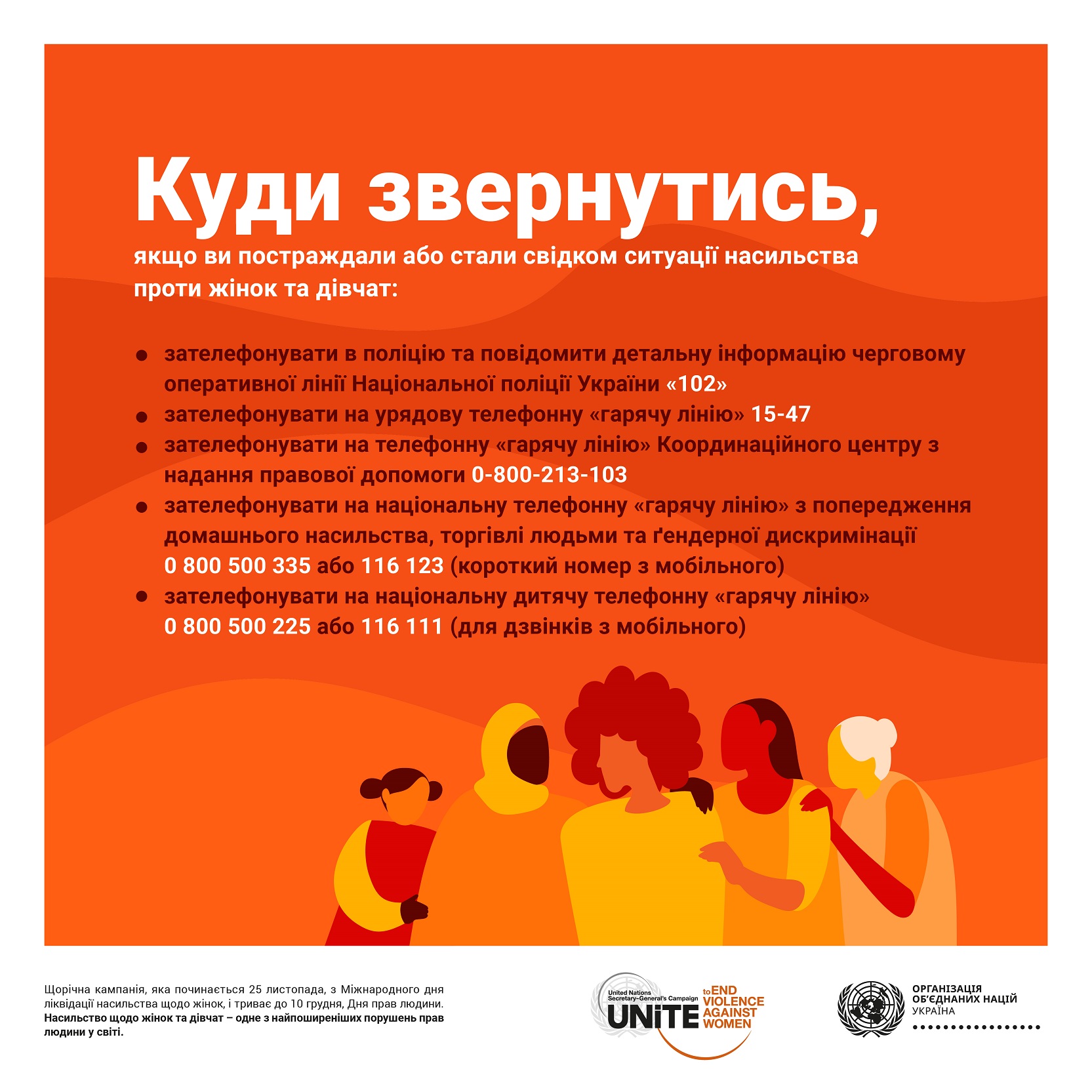 Наприкінці листопада стартувала всесвітня кампанія ООН 16 Днів активізму проти гендерно зумовленого насильства. Вона почалася з Міжнародного дня ліквідації насильства щодо жінок і триває до 10 грудня, Дня прав людини.